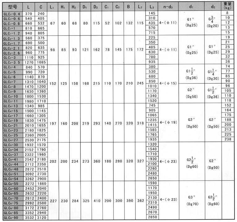 | GLL | 4~7 | 0.631.0 | 1:1.5左右 | ≥300 | ||||